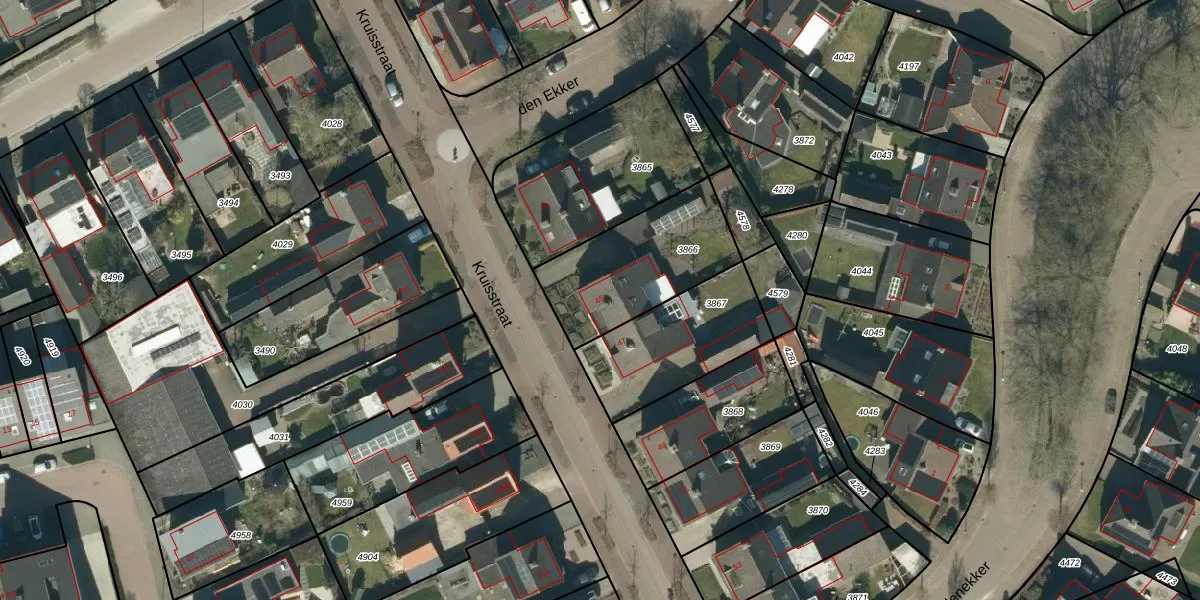 Het perceel waarop Kruisstraat 45 staat heeft een oppervlakte van 477 m². Dit is een groot perceel. De perceeloppervlakte wordt geregistreerd door het Kadaster. Gedetailleerde informatie over de maten van dit perceel kunt u vinden in het rapport Kadastrale kaart met maatvoering van Kruisstraat 45.
