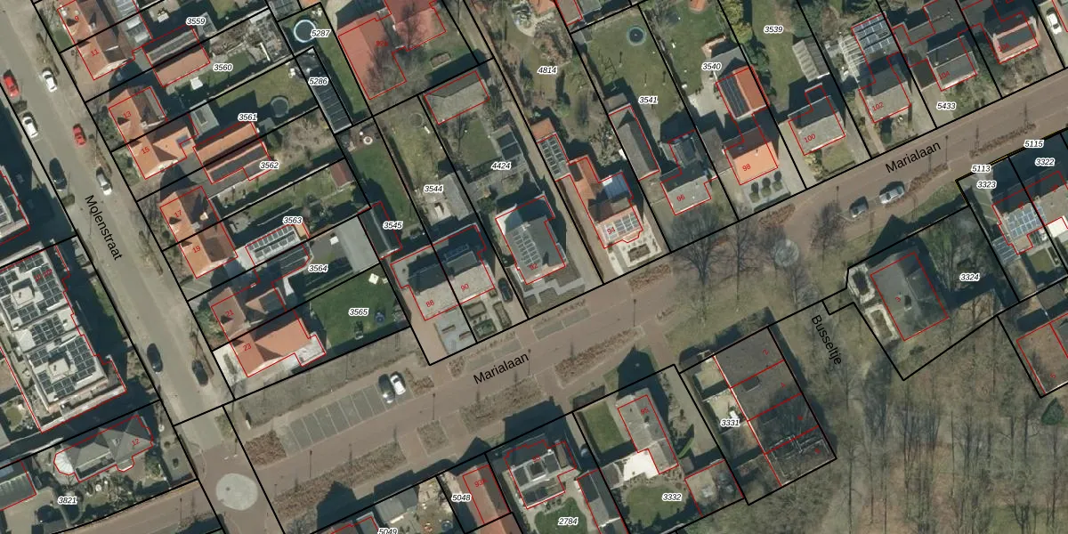 Marialaan 92 is gelegen op kadastraal perceel RSL00A4424. Deze kadastrale aanduiding is uniek en wordt gebruikt door het Kadaster om eigendomsrechten en andere zakelijke rechten vast te leggen. Het perceel maakt onderdeel uit van de kadastrale gemeente Reusel.