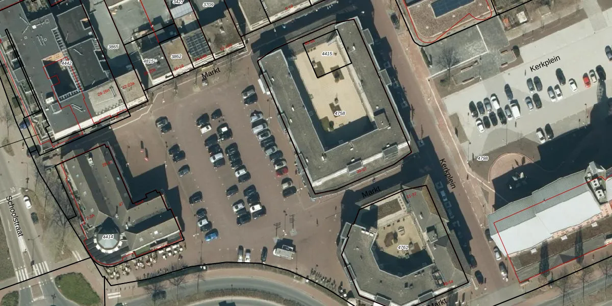 Het perceel waarop Markt 70 staat heeft een oppervlakte van 1566 m². Dit is een zeer groot perceel. De perceeloppervlakte wordt geregistreerd door het Kadaster. Gedetailleerde informatie over de maten van dit perceel kunt u vinden in het rapport Kadastrale kaart met maatvoering van Markt 70.