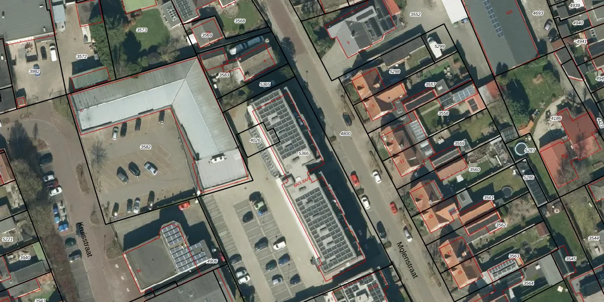 Het perceel waarop Molenstraat 6-A-7 staat heeft een oppervlakte van 2751 m². Dit is een zeer groot perceel. De perceeloppervlakte wordt geregistreerd door het Kadaster. Gedetailleerde informatie over de maten van dit perceel kunt u vinden in het rapport Kadastrale kaart met maatvoering van Molenstraat 6-A-7.