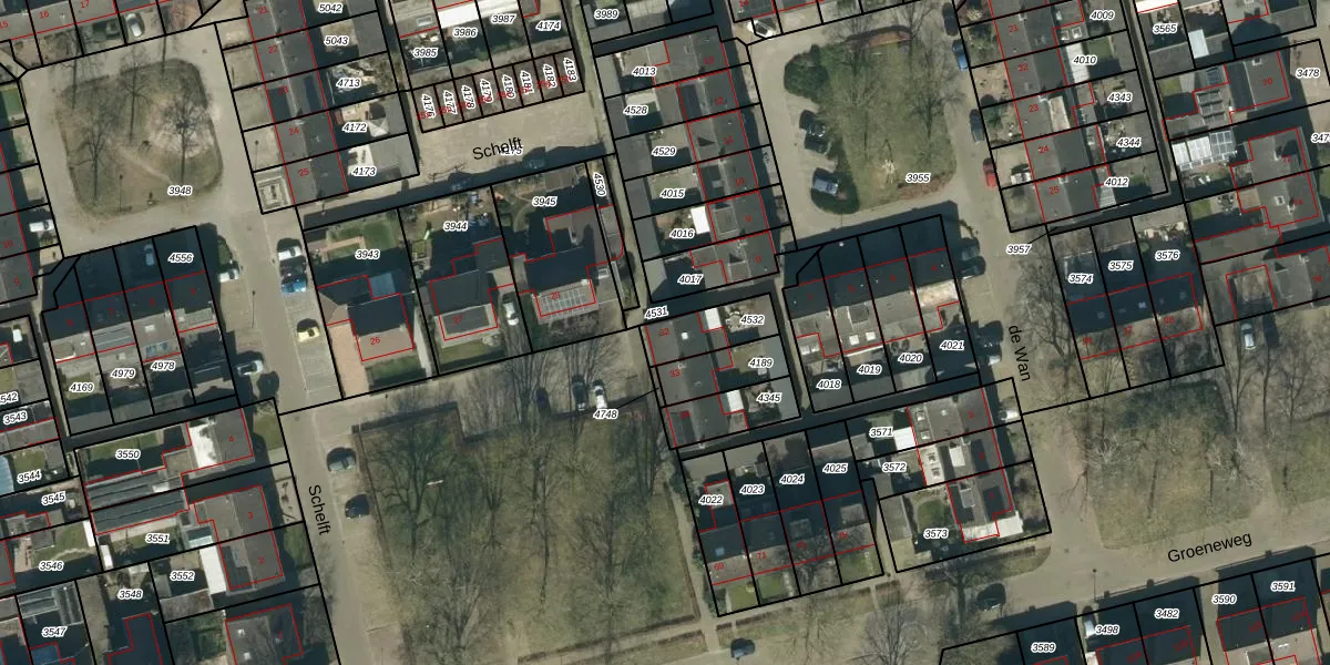 Het perceel waarop Schelft 32 staat heeft een oppervlakte van 131 m². Dit is een middelgroot perceel. De perceeloppervlakte wordt geregistreerd door het Kadaster. Gedetailleerde informatie over de maten van dit perceel kunt u vinden in het rapport Kadastrale kaart met maatvoering van Schelft 32.