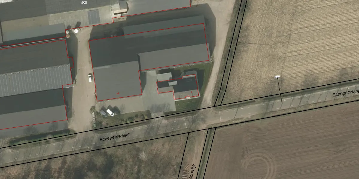 Het perceel waarop Schepersweijer 4 staat heeft een oppervlakte van 2,5 ha. Dit is een zeer groot perceel. De perceeloppervlakte wordt geregistreerd door het Kadaster. Gedetailleerde informatie over de maten van dit perceel kunt u vinden in het rapport Kadastrale kaart met maatvoering van Schepersweijer 4.