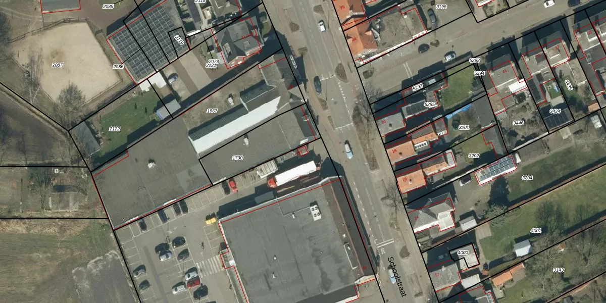 Het perceel waarop Schoolstraat 27-T staat heeft een oppervlakte van 4998 m². Dit is een zeer groot perceel. De perceeloppervlakte wordt geregistreerd door het Kadaster. Gedetailleerde informatie over de maten van dit perceel kunt u vinden in het rapport Kadastrale kaart met maatvoering van Schoolstraat 27-T.