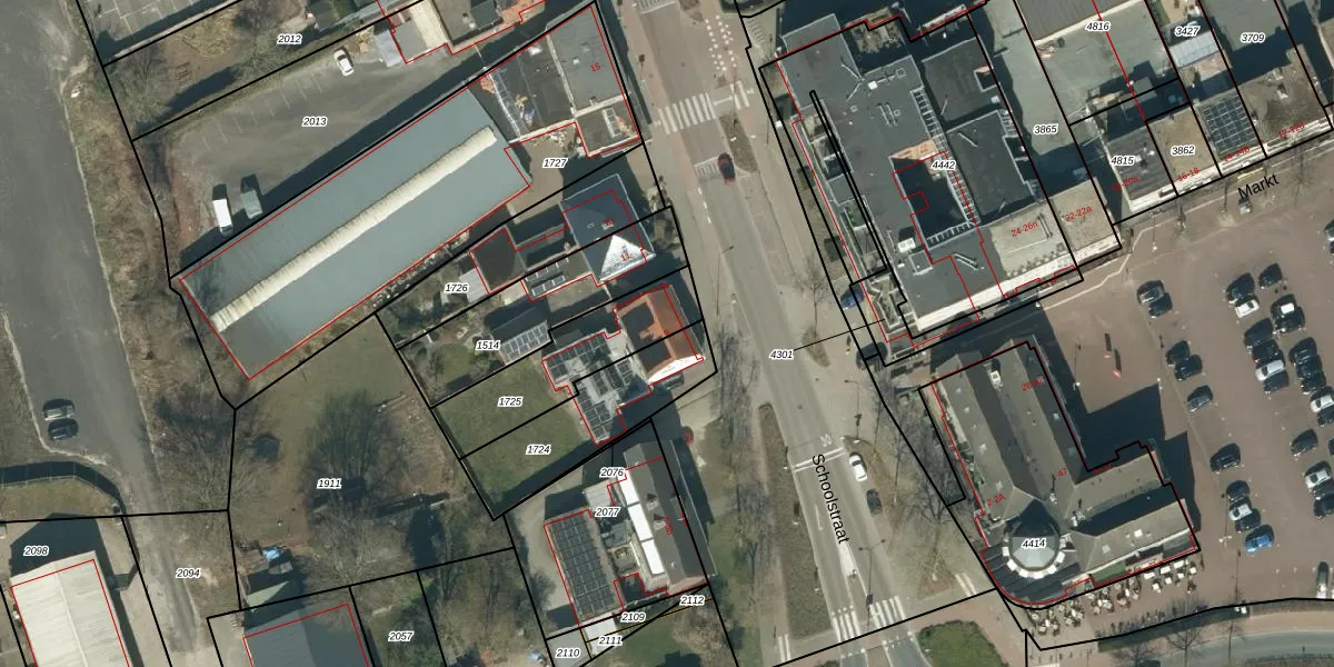 Het perceel waarop Schoolstraat 9 staat heeft een oppervlakte van 371 m². Dit is een groot perceel. De perceeloppervlakte wordt geregistreerd door het Kadaster. Gedetailleerde informatie over de maten van dit perceel kunt u vinden in het rapport Kadastrale kaart met maatvoering van Schoolstraat 9.