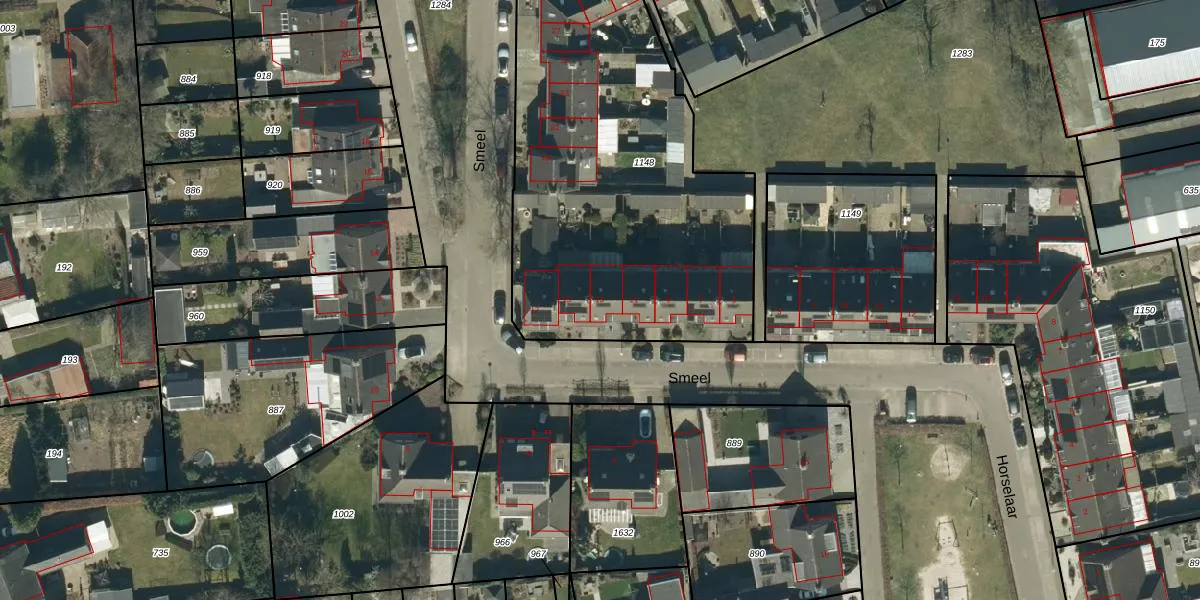 Het perceel waarop Smeel 13 staat heeft een oppervlakte van 2026 m². Dit is een zeer groot perceel. De perceeloppervlakte wordt geregistreerd door het Kadaster. Gedetailleerde informatie over de maten van dit perceel kunt u vinden in het rapport Kadastrale kaart met maatvoering van Smeel 13.