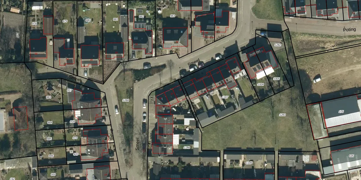 Het perceel waarop Smeel 33 staat heeft een oppervlakte van 2026 m². Dit is een zeer groot perceel. De perceeloppervlakte wordt geregistreerd door het Kadaster. Gedetailleerde informatie over de maten van dit perceel kunt u vinden in het rapport Kadastrale kaart met maatvoering van Smeel 33.