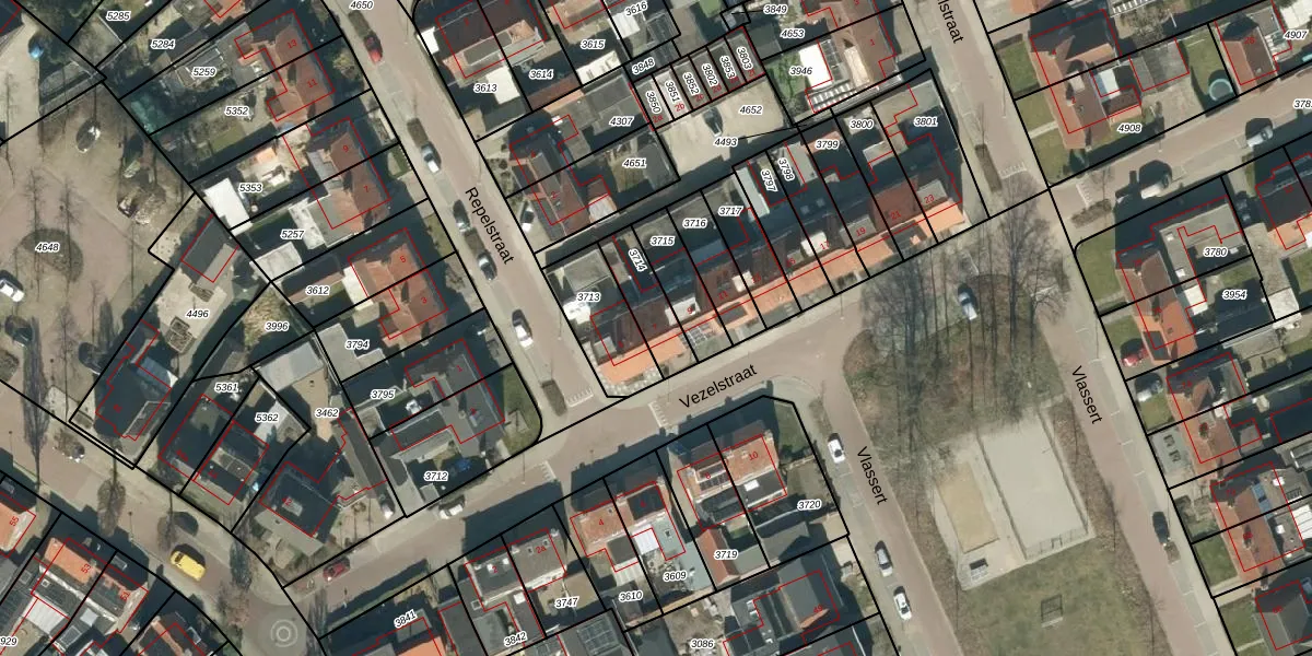 Gebruik de zoekbalk of klik op een perceel voor informatie over de adressen binnen dit perceel.