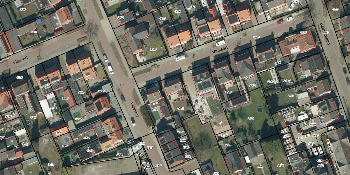 Het perceel waarop Vlassert 12 staat heeft een oppervlakte van 339 m². Dit is een groot perceel. De perceeloppervlakte wordt geregistreerd door het Kadaster. Gedetailleerde informatie over de maten van dit perceel kunt u vinden in het rapport Kadastrale kaart met maatvoering van Vlassert 12.