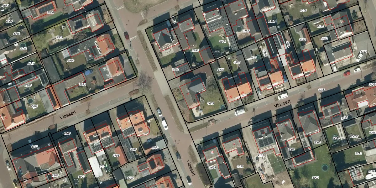 Het perceel waarop Vlassert 34 staat heeft een oppervlakte van 617 m². Dit is een groot perceel. De perceeloppervlakte wordt geregistreerd door het Kadaster. Gedetailleerde informatie over de maten van dit perceel kunt u vinden in het rapport Kadastrale kaart met maatvoering van Vlassert 34.