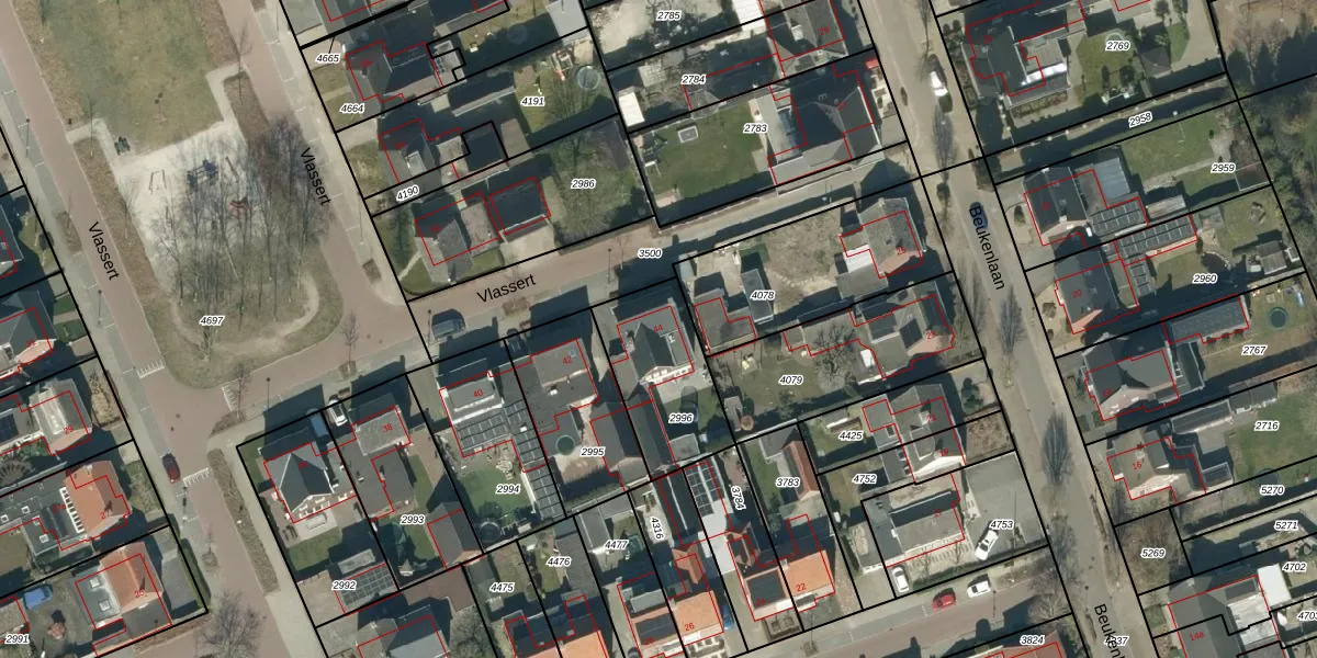 Het perceel waarop Vlassert 44 staat heeft een oppervlakte van 383 m². Dit is een groot perceel. De perceeloppervlakte wordt geregistreerd door het Kadaster. Gedetailleerde informatie over de maten van dit perceel kunt u vinden in het rapport Kadastrale kaart met maatvoering van Vlassert 44.