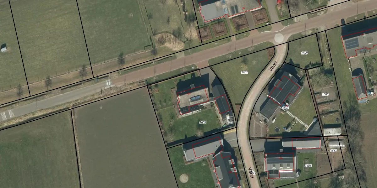 Het perceel waarop Voort 13-d staat heeft een oppervlakte van 1350 m². Dit is een zeer groot perceel. De perceeloppervlakte wordt geregistreerd door het Kadaster. Gedetailleerde informatie over de maten van dit perceel kunt u vinden in het rapport Kadastrale kaart met maatvoering van Voort 13-d.