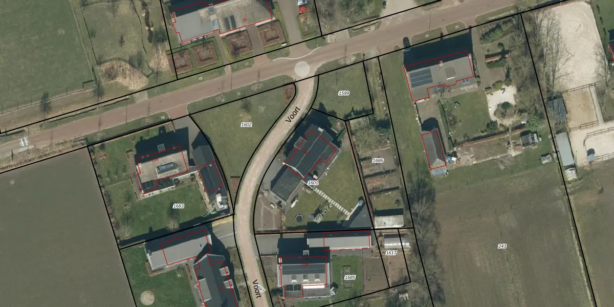 Het perceel waarop Voort 13-a staat heeft een oppervlakte van 1093 m². Dit is een zeer groot perceel. De perceeloppervlakte wordt geregistreerd door het Kadaster. Gedetailleerde informatie over de maten van dit perceel kunt u vinden in het rapport Kadastrale kaart met maatvoering van Voort 13-a.