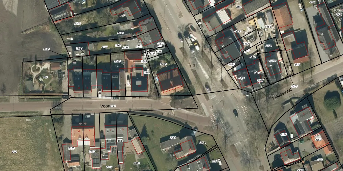 Het perceel waarop Voort 2 staat heeft een oppervlakte van 405 m². Dit is een groot perceel. De perceeloppervlakte wordt geregistreerd door het Kadaster. Gedetailleerde informatie over de maten van dit perceel kunt u vinden in het rapport Kadastrale kaart met maatvoering van Voort 2.