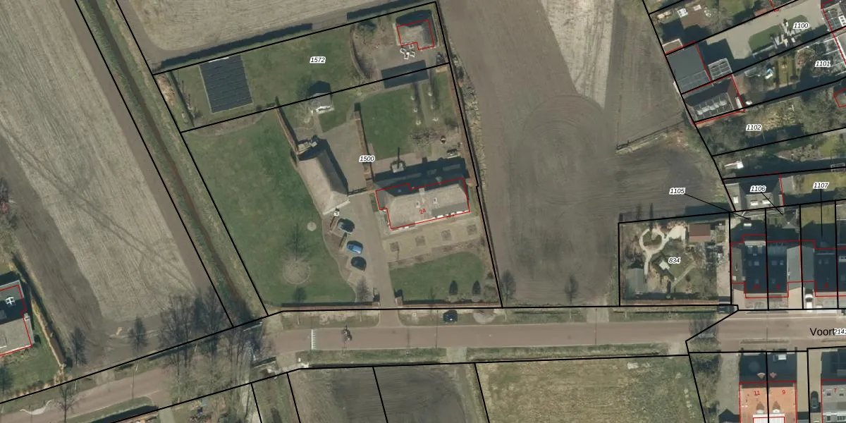 Het perceel waarop Voort 24 staat heeft een oppervlakte van 3150 m². Dit is een zeer groot perceel. De perceeloppervlakte wordt geregistreerd door het Kadaster. Gedetailleerde informatie over de maten van dit perceel kunt u vinden in het rapport Kadastrale kaart met maatvoering van Voort 24.