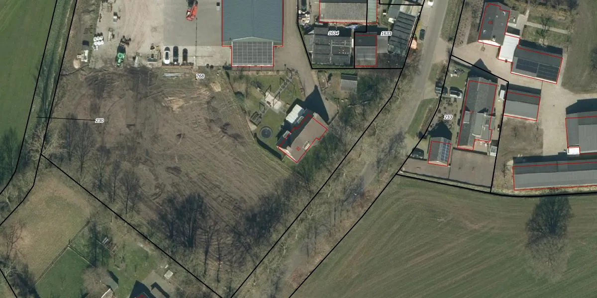 Het perceel waarop Voort 32 staat heeft een oppervlakte van 9165 m². Dit is een zeer groot perceel. De perceeloppervlakte wordt geregistreerd door het Kadaster. Gedetailleerde informatie over de maten van dit perceel kunt u vinden in het rapport Kadastrale kaart met maatvoering van Voort 32.