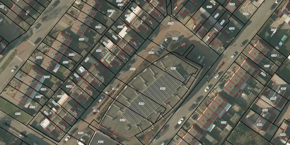 Het perceel waarop Amerslosestraat 21 staat heeft een oppervlakte van 850 m². Dit is een groot perceel. De perceeloppervlakte wordt geregistreerd door het Kadaster. Gedetailleerde informatie over de maten van dit perceel kunt u vinden in het rapport Kadastrale kaart met maatvoering van Amerslosestraat 21.