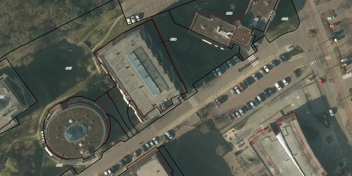 Het perceel waarop Bösdaellaan 16 staat heeft een oppervlakte van 1738 m². Dit is een zeer groot perceel. De perceeloppervlakte wordt geregistreerd door het Kadaster. Gedetailleerde informatie over de maten van dit perceel kunt u vinden in het rapport Kadastrale kaart met maatvoering van Bösdaellaan 16.