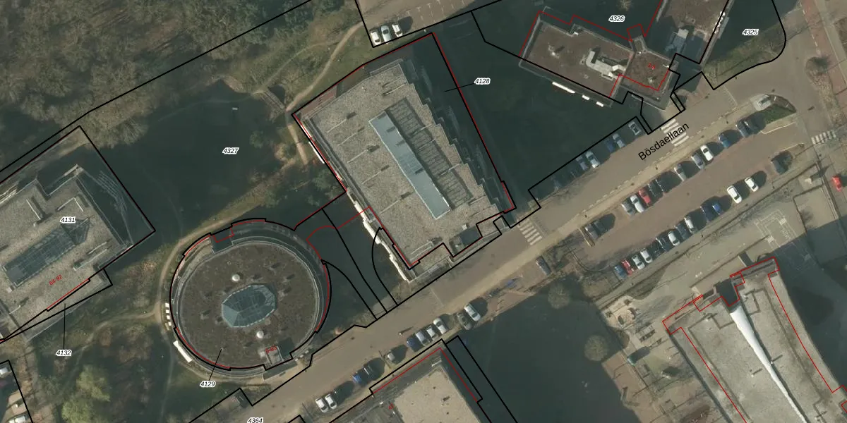 Het perceel waarop Bösdaellaan 19 staat heeft een oppervlakte van 1738 m². Dit is een zeer groot perceel. De perceeloppervlakte wordt geregistreerd door het Kadaster. Gedetailleerde informatie over de maten van dit perceel kunt u vinden in het rapport Kadastrale kaart met maatvoering van Bösdaellaan 19.
