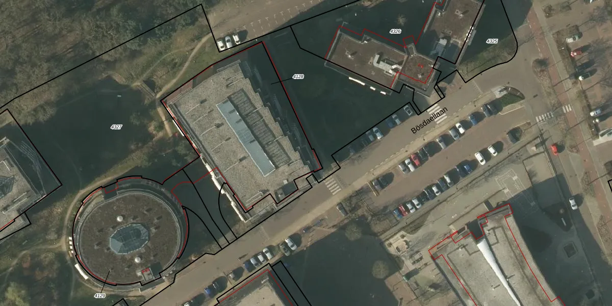 Het perceel waarop Bösdaellaan 24 staat heeft een oppervlakte van 1738 m². Dit is een zeer groot perceel. De perceeloppervlakte wordt geregistreerd door het Kadaster. Gedetailleerde informatie over de maten van dit perceel kunt u vinden in het rapport Kadastrale kaart met maatvoering van Bösdaellaan 24.