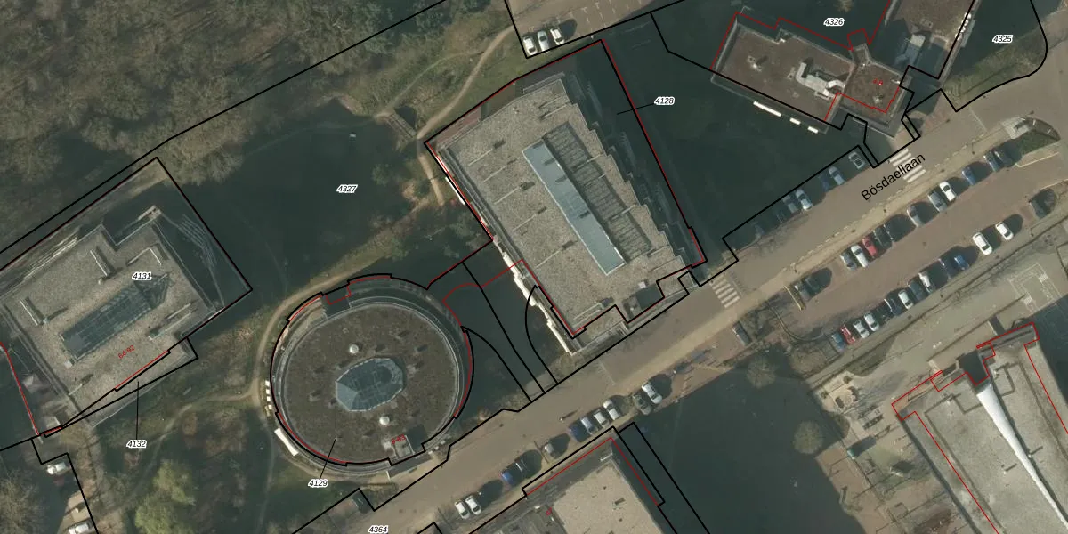 Het perceel waarop Bösdaellaan 25 staat heeft een oppervlakte van 1738 m². Dit is een zeer groot perceel. De perceeloppervlakte wordt geregistreerd door het Kadaster. Gedetailleerde informatie over de maten van dit perceel kunt u vinden in het rapport Kadastrale kaart met maatvoering van Bösdaellaan 25.