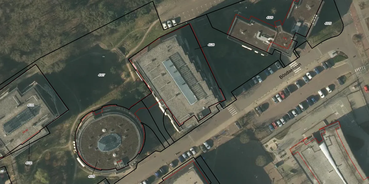 Het perceel waarop Bösdaellaan 28 staat heeft een oppervlakte van 1738 m². Dit is een zeer groot perceel. De perceeloppervlakte wordt geregistreerd door het Kadaster. Gedetailleerde informatie over de maten van dit perceel kunt u vinden in het rapport Kadastrale kaart met maatvoering van Bösdaellaan 28.