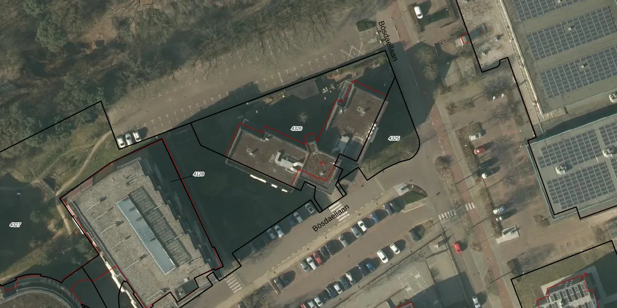 Het perceel waarop Bösdaellaan 3 staat heeft een oppervlakte van 1640 m². Dit is een zeer groot perceel. De perceeloppervlakte wordt geregistreerd door het Kadaster. Gedetailleerde informatie over de maten van dit perceel kunt u vinden in het rapport Kadastrale kaart met maatvoering van Bösdaellaan 3.