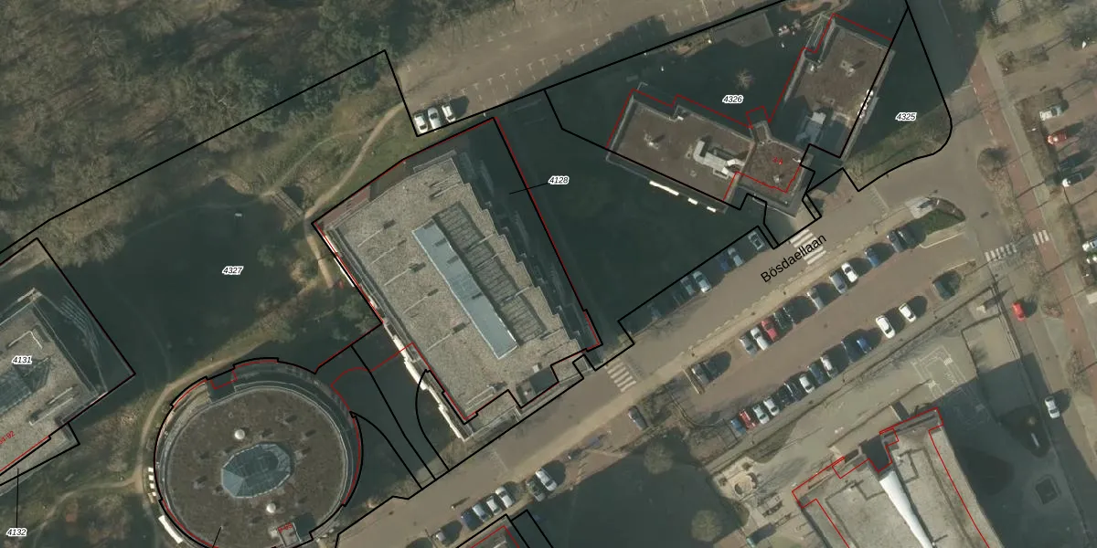 Het perceel waarop Bösdaellaan 40 staat heeft een oppervlakte van 1738 m². Dit is een zeer groot perceel. De perceeloppervlakte wordt geregistreerd door het Kadaster. Gedetailleerde informatie over de maten van dit perceel kunt u vinden in het rapport Kadastrale kaart met maatvoering van Bösdaellaan 40.