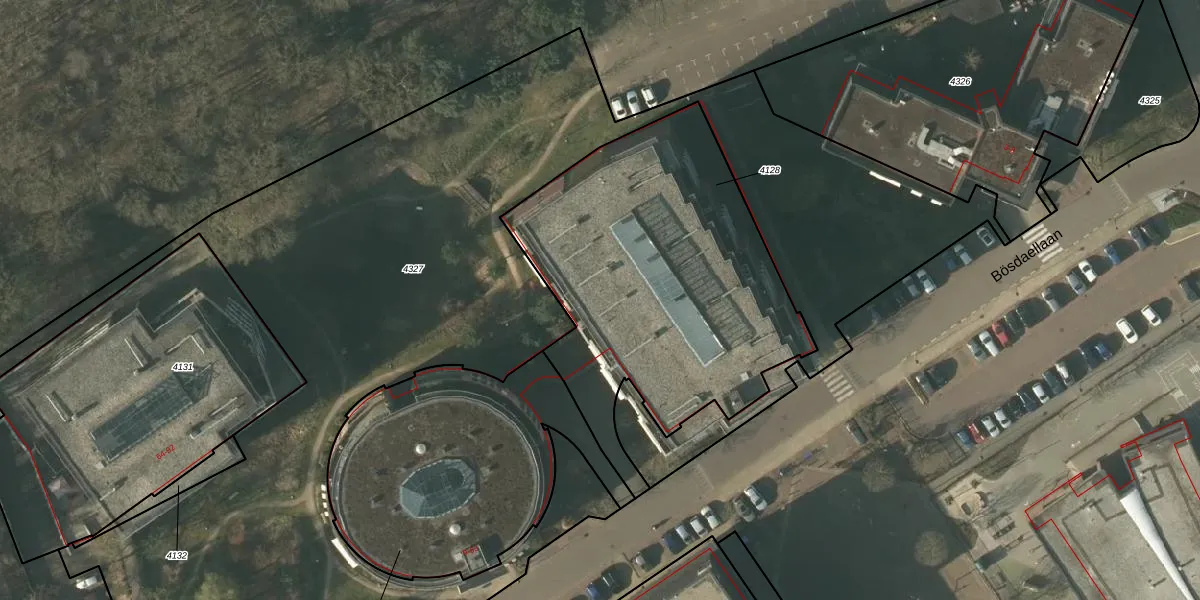 Het perceel waarop Bösdaellaan 42 staat heeft een oppervlakte van 1738 m². Dit is een zeer groot perceel. De perceeloppervlakte wordt geregistreerd door het Kadaster. Gedetailleerde informatie over de maten van dit perceel kunt u vinden in het rapport Kadastrale kaart met maatvoering van Bösdaellaan 42.