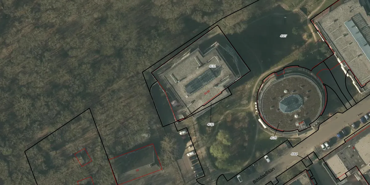 Het perceel waarop Bösdaellaan 69 staat heeft een oppervlakte van 1565 m². Dit is een zeer groot perceel. De perceeloppervlakte wordt geregistreerd door het Kadaster. Gedetailleerde informatie over de maten van dit perceel kunt u vinden in het rapport Kadastrale kaart met maatvoering van Bösdaellaan 69.