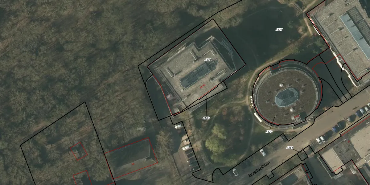 Het perceel waarop Bösdaellaan 70 staat heeft een oppervlakte van 1565 m². Dit is een zeer groot perceel. De perceeloppervlakte wordt geregistreerd door het Kadaster. Gedetailleerde informatie over de maten van dit perceel kunt u vinden in het rapport Kadastrale kaart met maatvoering van Bösdaellaan 70.