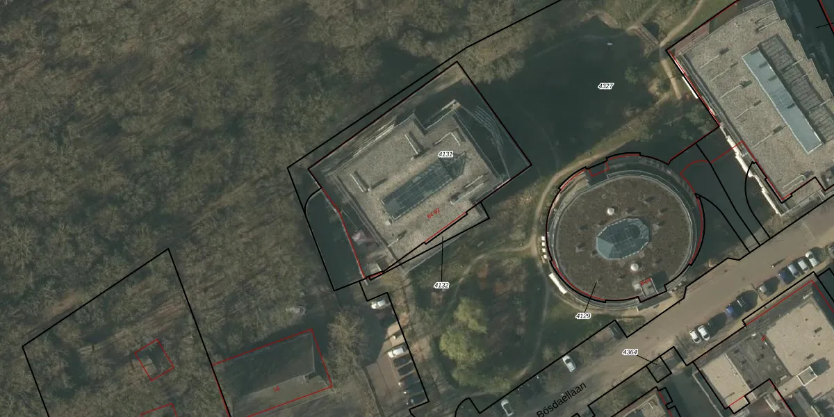 Het perceel waarop Bösdaellaan 74 staat heeft een oppervlakte van 1565 m². Dit is een zeer groot perceel. De perceeloppervlakte wordt geregistreerd door het Kadaster. Gedetailleerde informatie over de maten van dit perceel kunt u vinden in het rapport Kadastrale kaart met maatvoering van Bösdaellaan 74.