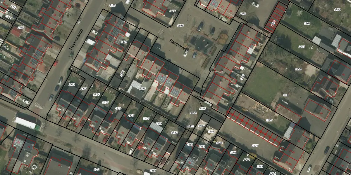 Het perceel waarop Benheuvel 7 staat heeft een oppervlakte van 1155 m². Dit is een zeer groot perceel. De perceeloppervlakte wordt geregistreerd door het Kadaster. Gedetailleerde informatie over de maten van dit perceel kunt u vinden in het rapport Kadastrale kaart met maatvoering van Benheuvel 7.