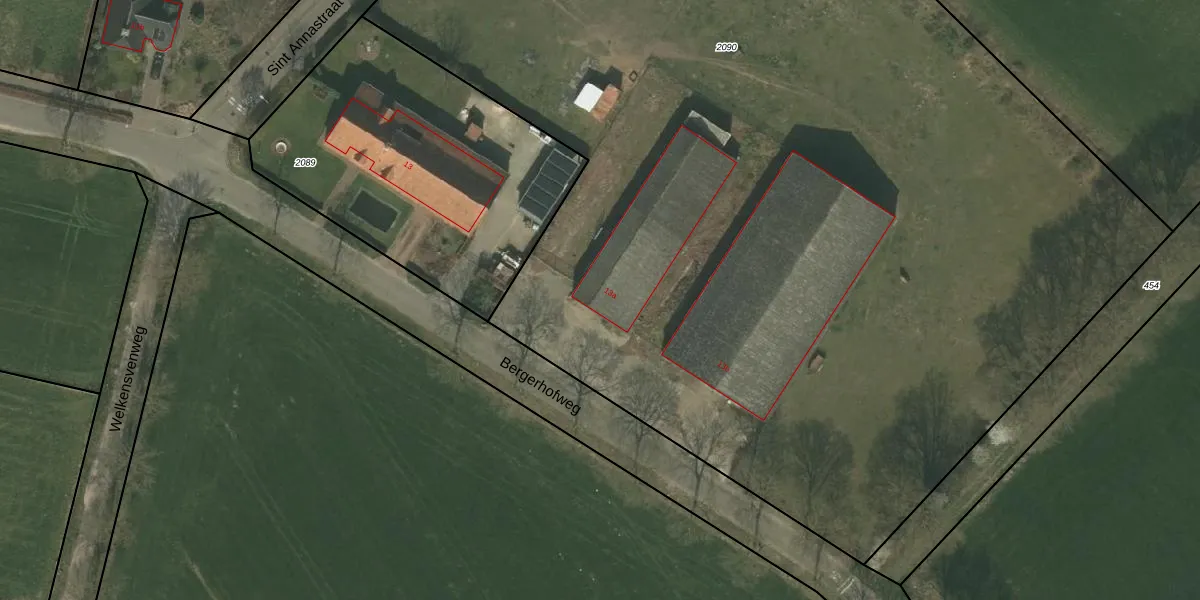 Bergerhofweg 13-a is gelegen op kadastraal perceel BSL02K2090. Deze kadastrale aanduiding is uniek en wordt gebruikt door het Kadaster om eigendomsrechten en andere zakelijke rechten vast te leggen. Het perceel maakt onderdeel uit van de kadastrale gemeente Beesel.