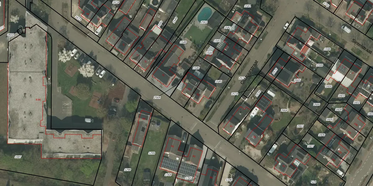 Gebruik de zoekbalk of klik op een perceel voor informatie over de adressen binnen dit perceel.