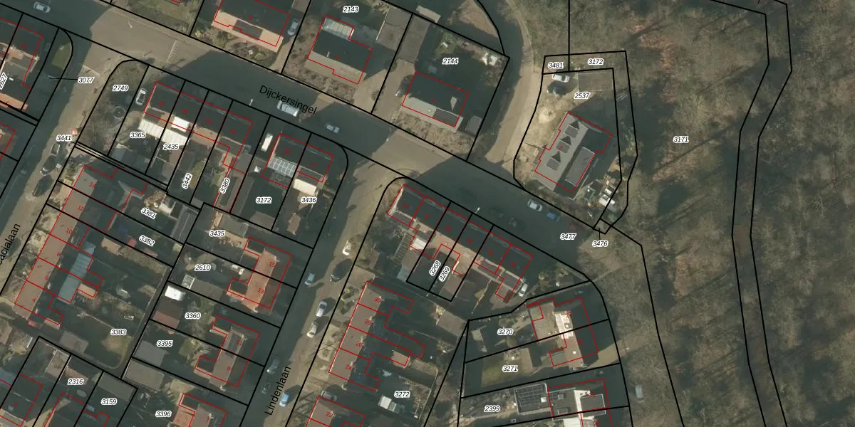 Het perceel waarop Dijckersingel 37 staat heeft een oppervlakte van 2358 m². Dit is een zeer groot perceel. De perceeloppervlakte wordt geregistreerd door het Kadaster. Gedetailleerde informatie over de maten van dit perceel kunt u vinden in het rapport Kadastrale kaart met maatvoering van Dijckersingel 37.