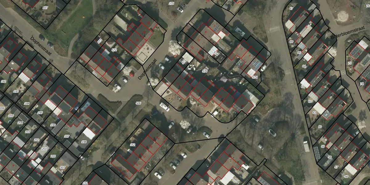 Het perceel waarop Dopheistraat 19 staat heeft een oppervlakte van 1849 m². Dit is een zeer groot perceel. De perceeloppervlakte wordt geregistreerd door het Kadaster. Gedetailleerde informatie over de maten van dit perceel kunt u vinden in het rapport Kadastrale kaart met maatvoering van Dopheistraat 19.