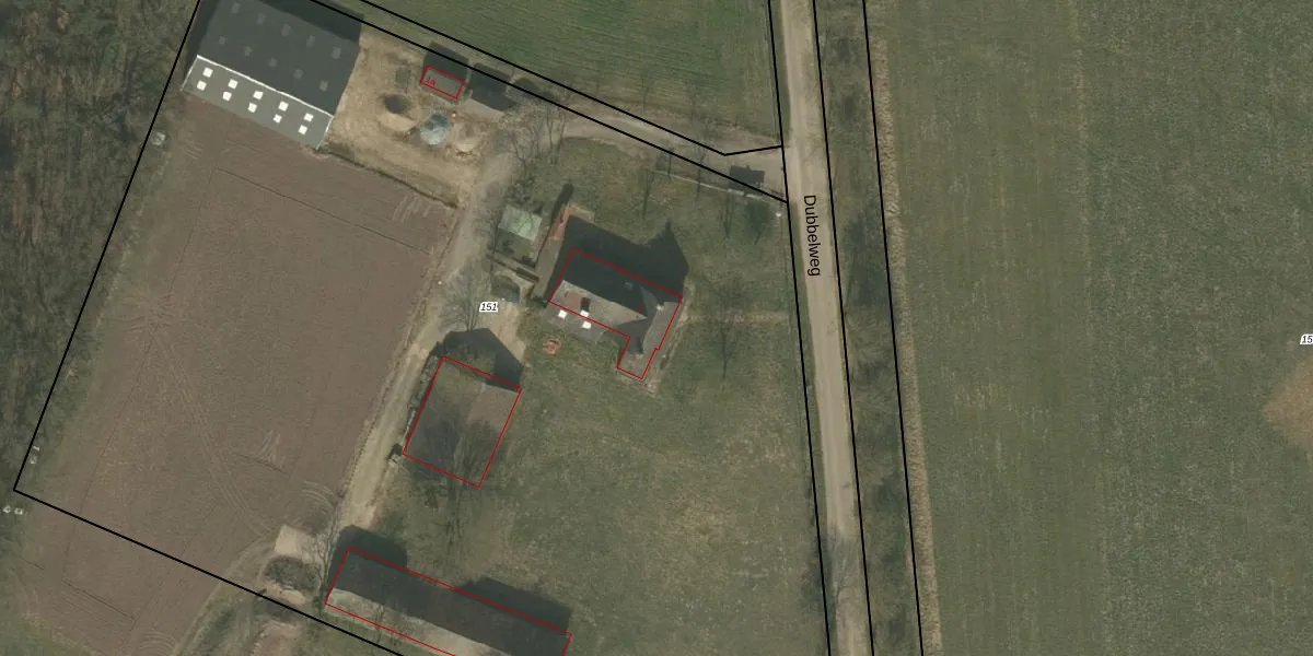 Het perceel waarop Dubbelweg 1 staat heeft een oppervlakte van 1,0 ha. Dit is een zeer groot perceel. De perceeloppervlakte wordt geregistreerd door het Kadaster. Gedetailleerde informatie over de maten van dit perceel kunt u vinden in het rapport Kadastrale kaart met maatvoering van Dubbelweg 1.