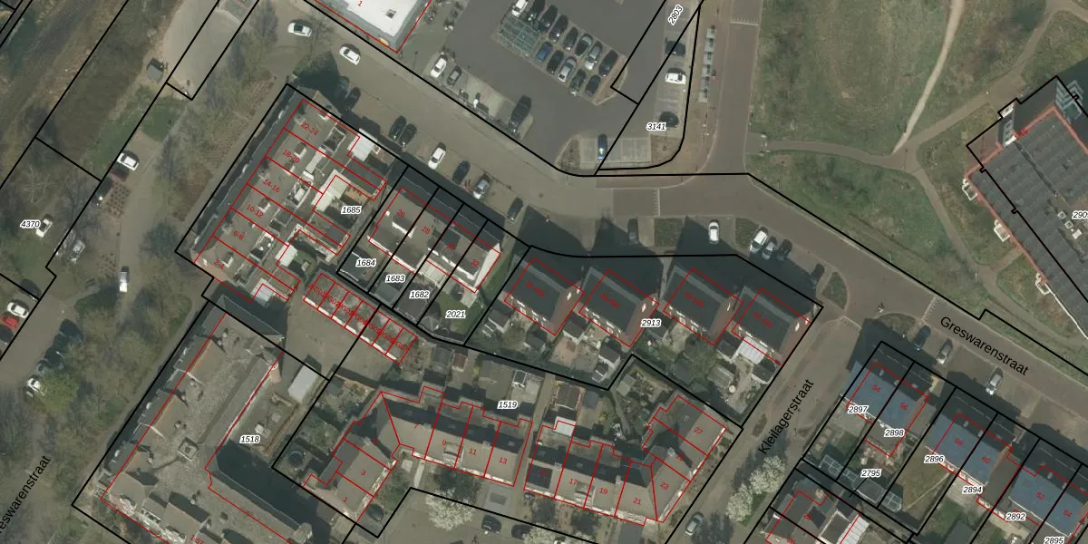 Het perceel waarop Greswarenstraat 46 staat heeft een oppervlakte van 1280 m². Dit is een zeer groot perceel. De perceeloppervlakte wordt geregistreerd door het Kadaster. Gedetailleerde informatie over de maten van dit perceel kunt u vinden in het rapport Kadastrale kaart met maatvoering van Greswarenstraat 46.