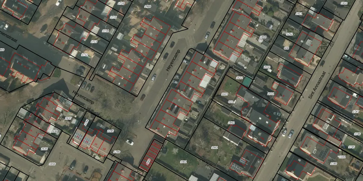 Het perceel waarop Heyencamp 36 staat heeft een oppervlakte van 2835 m². Dit is een zeer groot perceel. De perceeloppervlakte wordt geregistreerd door het Kadaster. Gedetailleerde informatie over de maten van dit perceel kunt u vinden in het rapport Kadastrale kaart met maatvoering van Heyencamp 36.