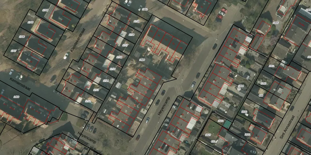 Het perceel waarop Heyencamp 47 staat heeft een oppervlakte van 2163 m². Dit is een zeer groot perceel. De perceeloppervlakte wordt geregistreerd door het Kadaster. Gedetailleerde informatie over de maten van dit perceel kunt u vinden in het rapport Kadastrale kaart met maatvoering van Heyencamp 47.