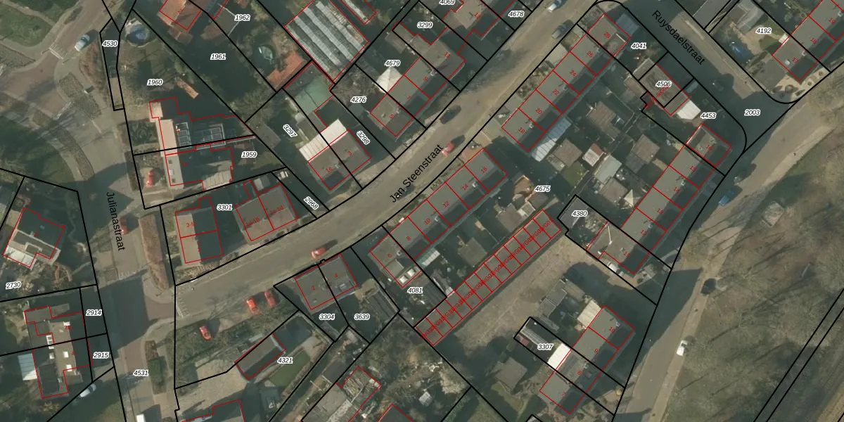Het perceel waarop Jan Steenstraat 10 staat heeft een oppervlakte van 4226 m². Dit is een zeer groot perceel. De perceeloppervlakte wordt geregistreerd door het Kadaster. Gedetailleerde informatie over de maten van dit perceel kunt u vinden in het rapport Kadastrale kaart met maatvoering van Jan Steenstraat 10.