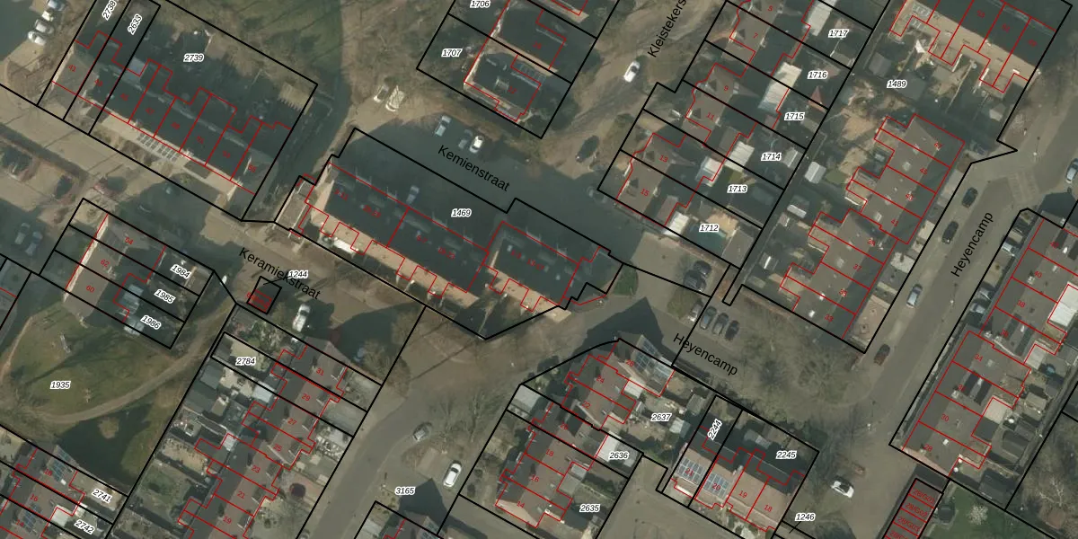 Het perceel waarop Kemienstraat 1 staat heeft een oppervlakte van 1215 m². Dit is een zeer groot perceel. De perceeloppervlakte wordt geregistreerd door het Kadaster. Gedetailleerde informatie over de maten van dit perceel kunt u vinden in het rapport Kadastrale kaart met maatvoering van Kemienstraat 1.