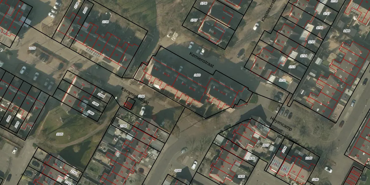 Het perceel waarop Kemienstraat 21 staat heeft een oppervlakte van 1215 m². Dit is een zeer groot perceel. De perceeloppervlakte wordt geregistreerd door het Kadaster. Gedetailleerde informatie over de maten van dit perceel kunt u vinden in het rapport Kadastrale kaart met maatvoering van Kemienstraat 21.