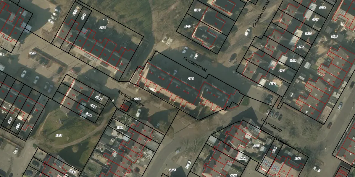 Het perceel waarop Kemienstraat 7 staat heeft een oppervlakte van 1215 m². Dit is een zeer groot perceel. De perceeloppervlakte wordt geregistreerd door het Kadaster. Gedetailleerde informatie over de maten van dit perceel kunt u vinden in het rapport Kadastrale kaart met maatvoering van Kemienstraat 7.