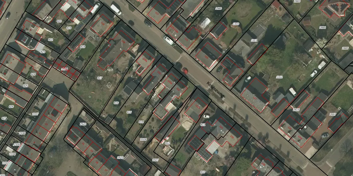 Het perceel waarop Keulseweg 122 staat heeft een oppervlakte van 455 m². Dit is een groot perceel. De perceeloppervlakte wordt geregistreerd door het Kadaster. Gedetailleerde informatie over de maten van dit perceel kunt u vinden in het rapport Kadastrale kaart met maatvoering van Keulseweg 122.