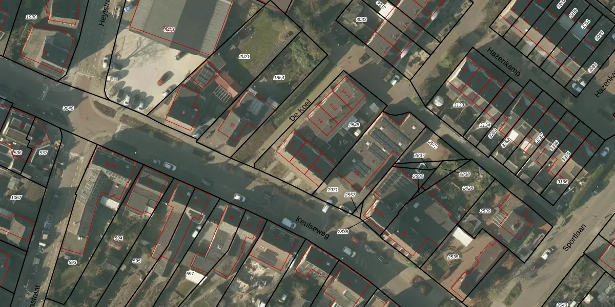 Het perceel waarop Keulseweg 59 staat heeft een oppervlakte van 800 m². Dit is een groot perceel. De perceeloppervlakte wordt geregistreerd door het Kadaster. Gedetailleerde informatie over de maten van dit perceel kunt u vinden in het rapport Kadastrale kaart met maatvoering van Keulseweg 59.