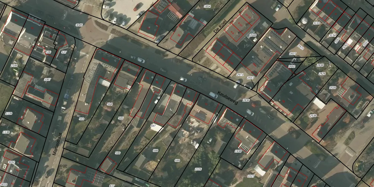 Het perceel waarop Keulseweg 70 staat heeft een oppervlakte van 545 m². Dit is een groot perceel. De perceeloppervlakte wordt geregistreerd door het Kadaster. Gedetailleerde informatie over de maten van dit perceel kunt u vinden in het rapport Kadastrale kaart met maatvoering van Keulseweg 70.