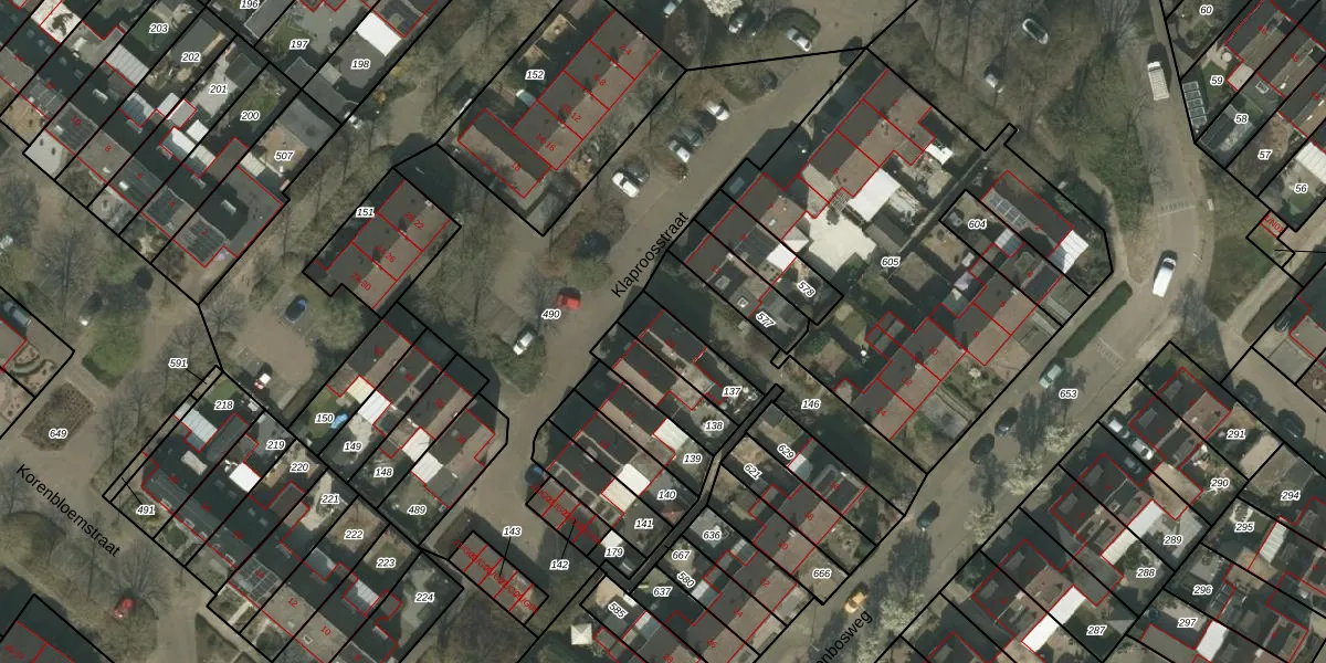 Gebruik de zoekbalk of klik op een perceel voor informatie over de adressen binnen dit perceel.