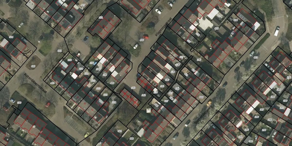 Gebruik de zoekbalk of klik op een perceel voor informatie over de adressen binnen dit perceel.