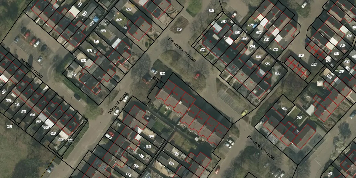 Het perceel waarop Korenbloemstraat 33 staat heeft een oppervlakte van 3714 m². Dit is een zeer groot perceel. De perceeloppervlakte wordt geregistreerd door het Kadaster. Gedetailleerde informatie over de maten van dit perceel kunt u vinden in het rapport Kadastrale kaart met maatvoering van Korenbloemstraat 33.